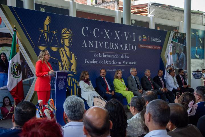 NOTICIAS 29/04/2025La Universidad Michoacana de hoy, no es la misma de ayer; ha crecido y se ha transformado La Universidad Michoacana de hoy, no es la misma de ayer, ya que se ha transformado y ha crecido en el ámbito académico, deportivo y cultural, expresaron asistentes al acto con motivo del CCXXVI aniversario de la Instauración de los Estudios de Derecho en Michoacán, que estuvo encabezado por el gobernador del Estado, Alfredo Ramírez Bedolla y por la rectora Yarabí Ávila González.