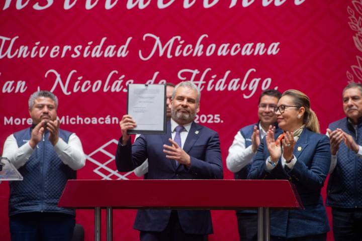 NOTICIAS 08/01/2025Gobernador firma Decreto de Promulgación de la Reforma Constitucional a la Universidad Michoacana "Con esta Reforma, dejamos atrás 50 años de déficit presupuestal de la Universidad Michoacana, no puede haber autonomía, es imposible tener autonomía si no se tiene una viabilidad económica y financiera garantizada, por eso hoy, la autonomía de la Universidad es una realidad porque sus finanzas son cero déficit, es presupuesto pleno", afirmó el gobernador Alfredo Ramírez Bedolla, al firmar el Decreto de Promulgación de la Reforma Cons... Ver más...