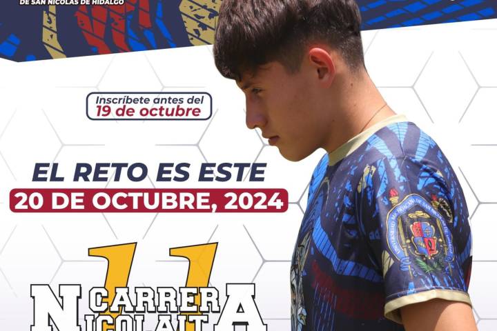 NOTICIAS 12/10/2024¿Aún no te inscribes en la 11ª Carrera Atlética Nicolaita? Todavía tienes oportunidad de participar Continúan abiertas las inscripciones para la 11ª Carrera Nicolaita que organiza la Universidad Michoacana de San Nicolás de Hidalgo (UMSNH), un evento deportivo emblemático en la ciudad que se llevará a cabo el próximo domingo 20 de octubre y en el que se espera la participación de alrededor de mil 500 atletas.