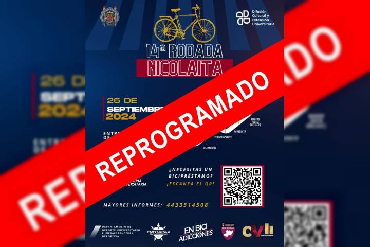 La Rodada Nicolaita que realiza la Universidad Michoacana de San Nicolás de Hidalgo (UMSNH) se suspenderá este jueves debido al pronóstico de lluvia. La próxima fecha se dará a conocer a través de las redes sociales oficiales de la institución por lo que se les invita a estar pendientes. La actividad deportiva se ha convertido en todo un éxito con la participación de cientos de personas que se han sumado a pedalear a lo largo de 1...