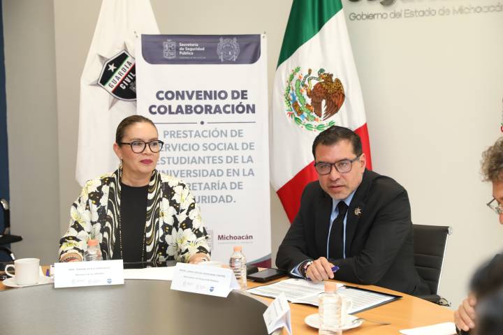 La Universidad Michoacana de San Nicolás de Hidalgo (UMSNH) y la Secretaría de Seguridad Pública (SSP) de Michoacán pactaron trabajar en equipo en beneficio del estudiantado y de la sociedad en general, tras la firma de dos convenios de colaboración entre la rectora Yarabí Ávila González y el titular de la dependencia estatal, Juan Carlos Oseguera Cortés. Con la presencia de funcionarias y funcionarios nicolaitas y de la SSP, signaro...