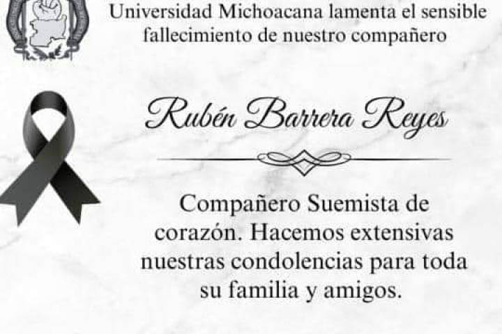 Las autoridades nicolaitas continúan en una constante violación de los derechos laborales y hoy se consuma otra más. "Después de una larga agonía ha fallecido nuestro amigo y compañero Rubén Barrera Reyes, sin que la justicia haya llegado a su persona, después de haber sido despojado de su salario por más de dos años por Rafael Mora, uno de los abogados del jurídico, que, a pesar de su acto despreciable, hoy permanece protegido po...