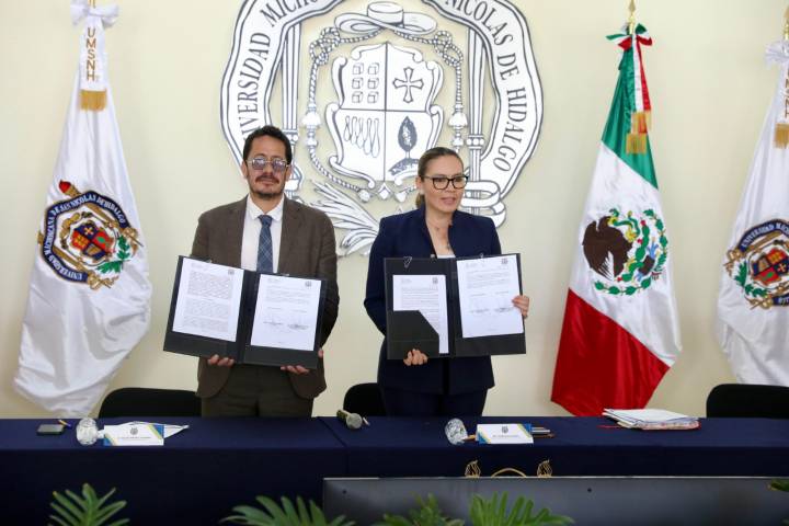 NOTICIAS 11/06/2024Apuesta UMSNH y Sedeco por la formación dual y el emprendedurismo en el estudiantado Con la apuesta de impulsar la formación dual y el emprendedurismo en el estudiantado nicolaita, la rectora de la Universidad Michoacana de San Nicolás de Hidalgo (UMSNH), Yarabí Ávila González y el secretario de Desarrollo Económico (Sedeco) del Gobierno del Estado, Claudio Méndez Fernández signaron un convenio de colaboración.