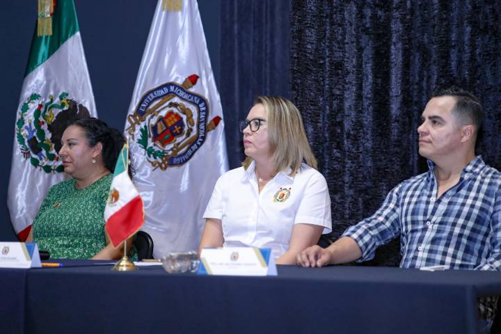 La rectora de la Máxima Casa de Estudios, Yarabí Ávila González acompañada de la directora del Instituto de Educación Media Superior y Superior de Michoacán (IEMSySEM), Mariana Sosa Olmeda, encabez... Ver más...