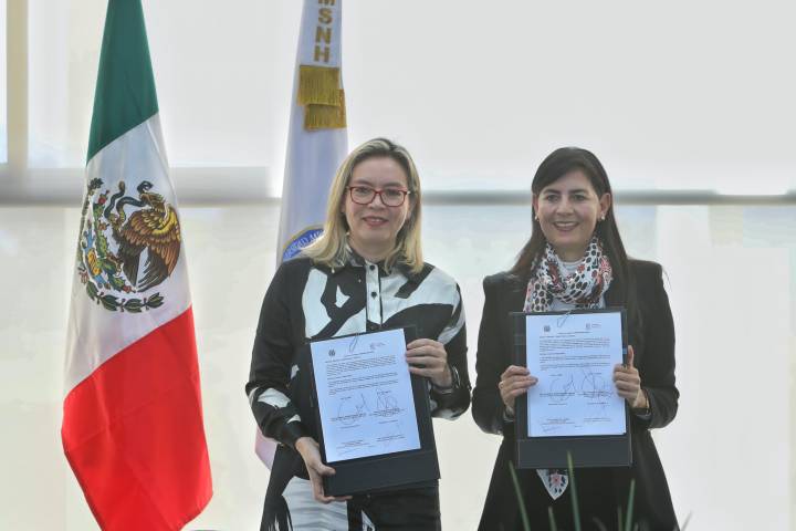 NOTICIAS 28/11/2023UMSNH y SEE sellan alianza a favor de la niñez en Michoacán La Universidad Michoacana de San Nicolás de Hidalgo (UMSNH) y la Secretaría de Educación en el Estado (SEE), acuerdan una ruta de trabajo conjunto en favor de la niñez y de las y los adolescentes, tras la firma de dos convenios de colaboración celebrados entre la rectora Yarabí Ávila González y la secretaria, Gabriela Molina Aguilar.