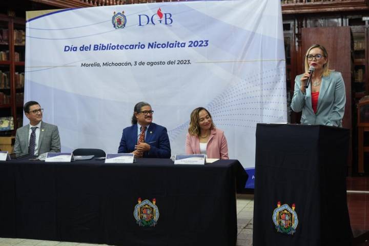 NOTICIAS 03/08/2023Respetar y dignificar el trabajo de las y los bibliotecarios, la mejor forma de reconocerlos: Rectora La mejor forma de reconocer a las y los bibliotecarios es respetando y dignificando el trabajo que realizan, afirmó la rectora de la Universidad Michoacana de San Nicolás de Hidalgo (UMSNH), Yarabí Ávila González, al asistir al acto con motivo del Día del Bibliotecario Nicolaita.