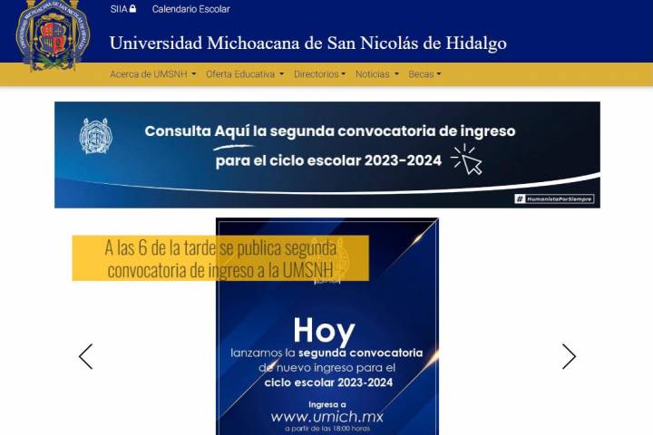 NOTICIAS 05/07/2023¿Quieres estudiar en la UMSNH? Abre segunda convocatoria; conoce qué carreras se ofertaránLa segunda convocatoria de nuevo ingreso a las licenciaturas y al bachillerato de la Universidad Michoacana de San Nicolás de Hidalgo (UMSNH) quedó abierta el día de hoy a partir de las 18:00 horas, las y los jóvenes que no alcanzaron a realizar su registro en la primera fase, tendrán oportunidad de aplicar en esta ocasión.