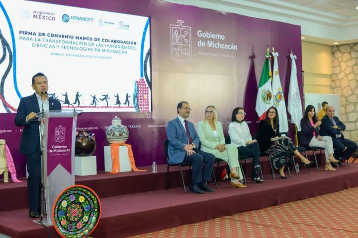 NOTICIAS 06/07/2023UMSNH, una de las instituciones de educación superior más importantes: ConahcytLa Universidad Michoacana de San Nicolás de Hidalgo (UMSNH) es una de las instituciones de educación superior más importantes, resaltó la directora del Consejo Nacional de Humanidades Ciencias y Tecnología (Conahcyt), María Elena Álvarez Buylla Roces, durante la firma del convenio de colaboración que signó con el Gobierno del Estado.