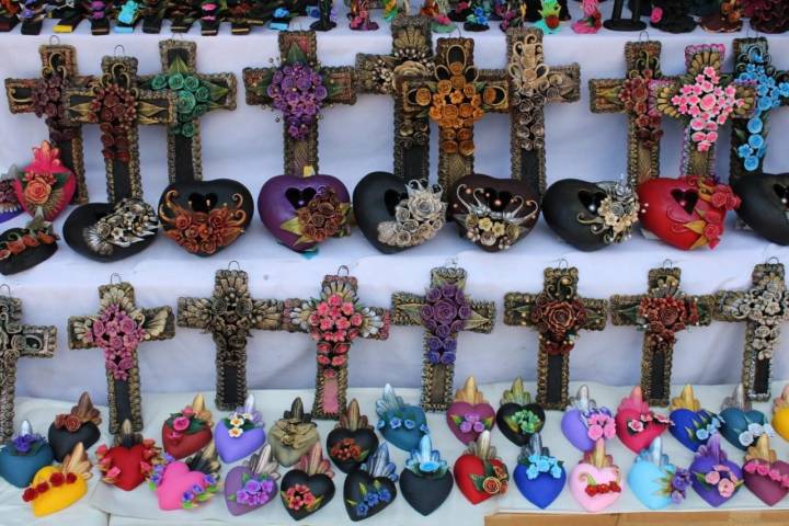 Con la oferta de 70 artesanos y 30 cocineras tradicionales, podrás encontrar cruces de barro de diferentes tamaños y detalles, catrinas, loza capulineada; antojitos mexicanos como enchiladas, pozole, mole rojo y más.