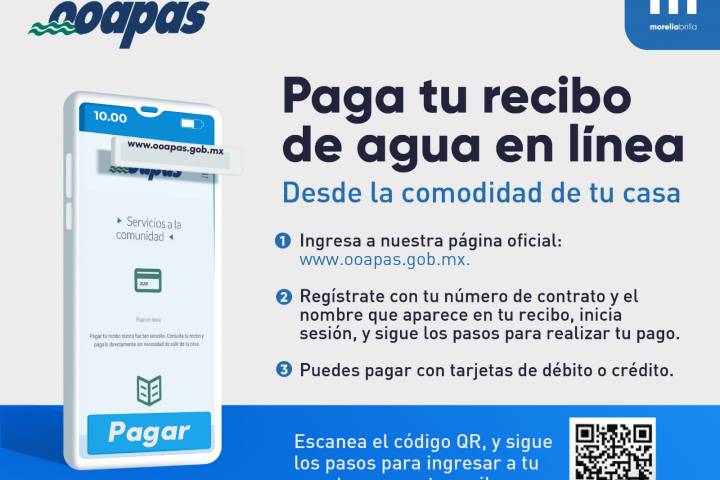 El Organismo Operador de Agua Potable, Alcantarillado y Saneamiento de Morelia (OOAPAS) ofrece alternativas a sus usuarios para pagar su recibo del agua este lunes 05 de febrero, día inhábil oficial por el Aniversario de la Constitución Política de los Estados Unidos Mexicanos. Para recibos vigentes, se puede realizar el pago en cualquier tienda OXXO; mientras que recibos vigentes o vencidos, se podrá pagar a través de la página oficial de...