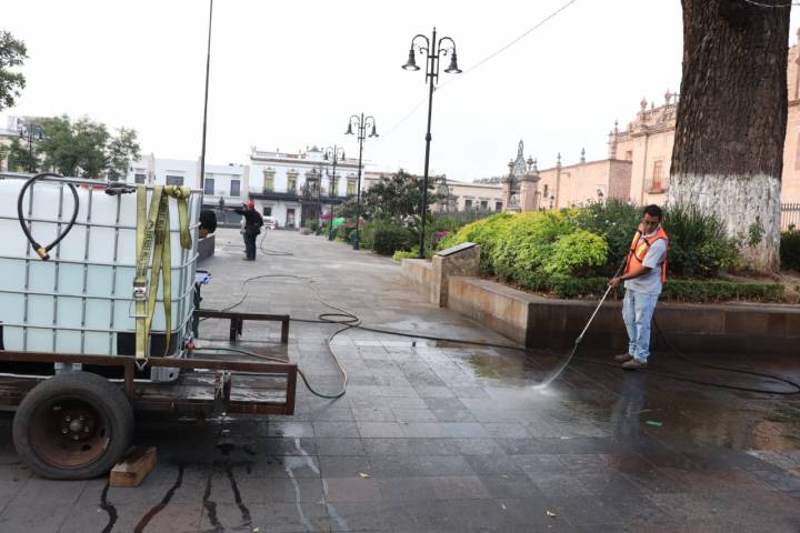 Tales acciones se llevan a cabo a primera hora, después de la liberación de este espacio ocupado por comerciantes que se encontraban en el Centro Histórico.