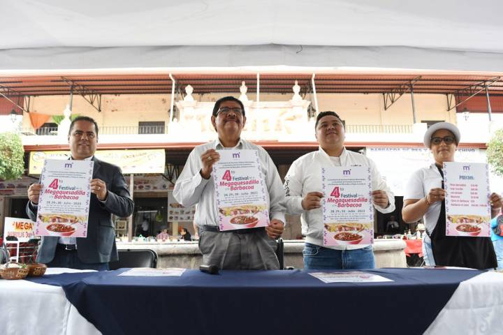 NOTICIAS 26/07/2023Gobierno de Morelia invita al "4to Festival de la Megaquesadilla y la Barbacoa"El Gobierno de Morelia que encabeza el Alcalde, Alfonso Martínez Alcázar, a través de las Secretarías de Servicios Públicos y de Fomento Económico (SEFECO), invitan al "Cuarto Festival de la Megaquesadilla y la Barbacoa" que se realizará en la Plaza Comercial San Juan los días 28, 29 y 30 de julio, en un horario de 9 de la mañana a 6 de la tarde.