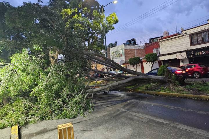 En la calle Fuentes de Morelia, se trabaja en el retiro de un árbol que fue derribado por los ventarrones; situaciÃ... Ver más...