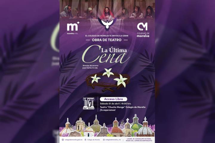 NOTICIAS 29/03/2023Teatro "Chucho Monge" se viste de gala para la obra "La Última Cena"El Teatro "Chucho Monge" del Colegio de Morelia será el escenario donde se presentará la puesta en escena "La Última Cena", del director Juan Carlos Arvide, en la que se presentará a un Jesús natural, humano y en confrontación consigo mismo ante su eminente calvario, abordando el tema desde un aspecto histórico reflexivo, que si bien fue verdad, también está rodeado de misterio.