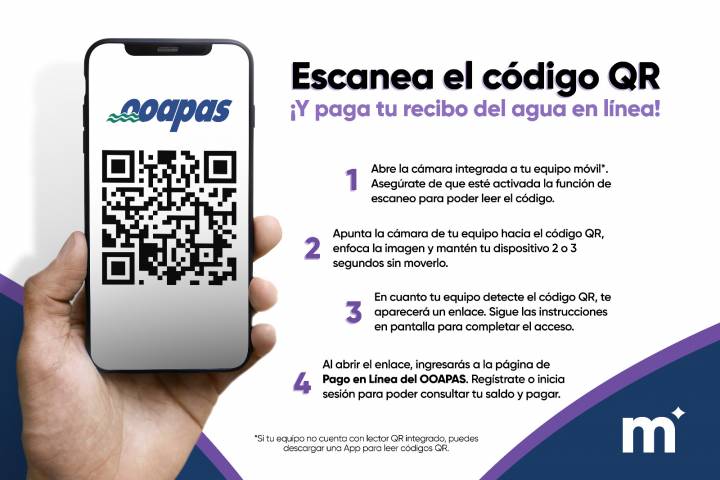 NOTICIAS 30/03/2023Con código QR, OOAPAS ofrece alternativa para pagar en líneaEl Organismo Operador de Agua Potable, Alcantarillado y Saneamiento de Morelia (OOAPAS) ofrece a sus usuarios una opción más para pagar en línea su recibo del agua y actualizar sus datos fiscales. Esto, a través de un código QR que podrá ser escaneado desde los dispositivos móviles, ya sean Android o iOS.