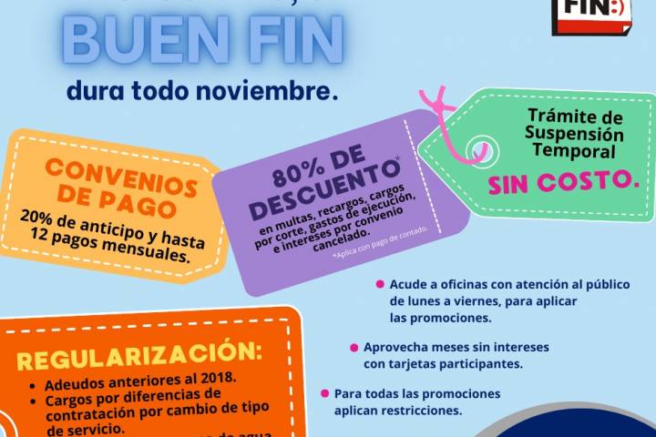 NOTICIAS 07/11/2022El OOAPAS se suma al Buen Fin con promociones durante todo noviembreEl Organismo Operador de Agua Potable Alcantarillado y Saneamiento de Morelia (OOAPAS), se suma al Buen Fin, ofreciendo durante todo el mes de noviembre varias promociones, descuentos y facilidades de pago en adeudos, para que los usuarios puedan ponerse al corriente.