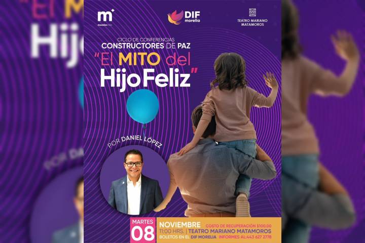 NOTICIAS 07/11/2022Invita DIF Morelia a conferencia "El mito del hijo feliz"El DIF de Morelia que preside Paola Delgadillo Hernández, invita a las y los morelianos a asistir este martes 8 de noviembre, a la conferencia "El mito del hijo feliz", la cual se llevará a cabo a las 11:00 horas en el Teatro Mariano Matamoros.