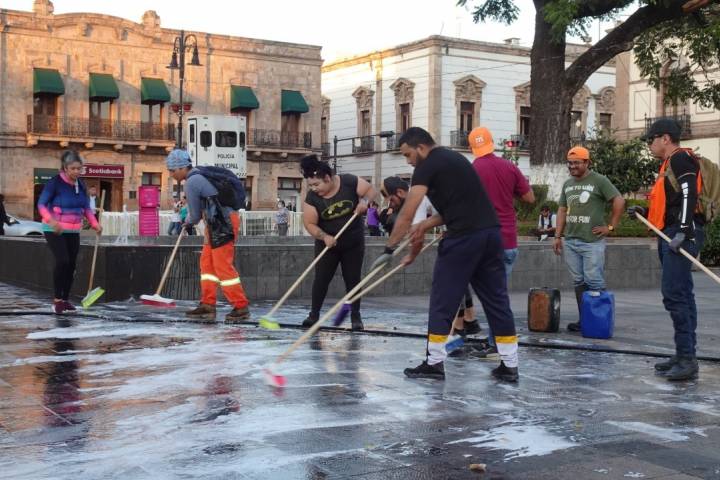 NOTICIAS 08/11/2022Gobierno Municipal le saca brillo a la plaza Melchor OcampoComo parte del esfuerzo que realiza el Ayuntamiento de Morelia para mantener limpia la ciudad, la Secretaría de Servicios Públicos a través de la Dirección de Residuos Sólidos, realizó una limpieza profunda en la plaza Melchor Ocampo.
