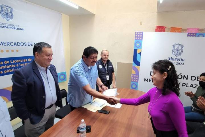 NOTICIAS 26/10/2022Gobierno de Morelia entrega licencias de funcionamiento a locatarios de mercados y plazas municipalesLa administración municipal que encabeza el alcalde, Alfonso Martínez Alcázar, en su compromiso de apoyar el comercio local, realizó está mañana la entrega de licencias de funcionamiento actualizadas para los locatarios de los mercados y plazas municipales.