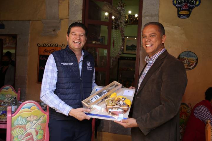 Con el propósito de conocer y replicar la estrategia exitosa de seguridad que se aplica en Morelia, el presidente, Alfonso Martínez Alcázar, expuso el modelo policial a una comitiva de autoridades municipales de Aguascalientes, encabezadas por el alcalde de Jesús María, José Antonio Arámbula López. En este sentido, Alfonso Martínez explicó que, en la capital de Michoacán, se trabaja en un esquema de prevención y justicia cívica, p...