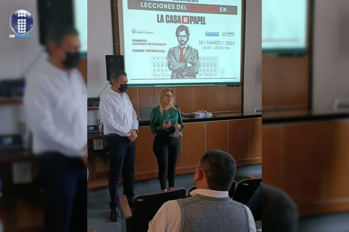 NOTICIAS 01/04/2022La capacidad enriquece el conocimiento para lograr metas: SEFECO MoreliaAtendiendo la invitación de Javier Cedeño, presidente de la Cámara Nacional de Comercio, (CANACO), la secretaria de Fomento Económico, Guadalupe Herrera Calderón, asistió al curso sobre ¨Liderazgo, Lecciones del profesor en la Casa de Papel¨, impartida por el conferencista Gustavo Petricolet.