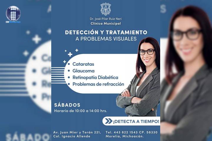 NOTICIAS 17/03/2022Ofrece Clínica Municipal servicio de detección y tratamiento a problemas visualesLa Clínica Municipal Poniente "Dr. José Pilar Ruiz Neri", informa que ofrecerá el servicio de detección y tratamiento a problemas visuales para todas las edades, con el fin de brindar atención médica visual, prevenir patologías y disminuir los índices de ceguera por causas prevenibles o tratables.