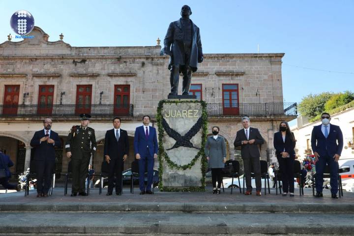 NOTICIAS 21/03/2022Conmemora Ayuntamiento el CCXVI Aniversario del Natalicio de Benito Juárez El presidente de Morelia, Alfonso Martínez Alcázar, en compañía de autoridades municipales y estatales, conmemoró este lunes el CCXVI Aniversario del Natalicio de Benito Juárez, con el izamiento de la Bandera Nacional y ceremonia cívica en su memoria.