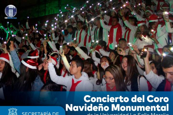 NOTICIAS 03/12/2021¡Ven a cantar! al Centro de Morelia con el Coro Navideño Monumental de la Universidad La SalleMorelia Ciudad Creativa de la Música recibe la época decembrina con una amplia actividad musical, como el concierto que este sábado 4 de diciembre se presenta de manera gratuita para la ciudadanía.