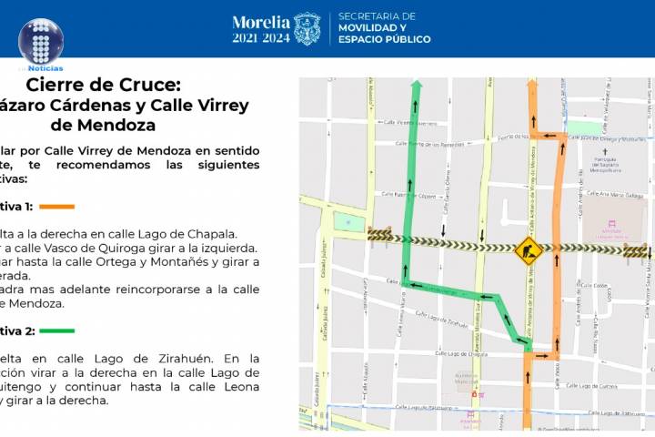Será este próximo lunes 8 de noviembre cuando el cruce de la avenida Lázaro Cárdenas y Virrey de Mendoza, quede cerrado para el paso de automovilistas ya que en ese tramo se avanzará con la reconstrucción de dicha avenida.