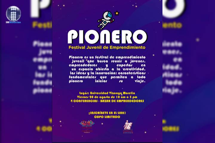 NOTICIAS 18/08/2021IJUM festeja a la juventud con el Festival de Emprendimiento Juvenil, PIONEROCon motivo de la celebración del "DÃa de la Juventud" que se celebra cada 12 de agosto, el Instituto de la Juventud Moreliana (IJUM) llevará a cabo diversas actividades durante este mes. El más próximo a realizarse es "PIONERO, Festival de emprendimiento Juvenil" que se realizará este próximo viernes 20 de agosto a partir de las 10 de la mañana en las instalaciones de la Universidad Vizcaya Morelia.