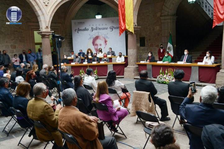 Con la finalidad de reconocer a mujeres que a lo largo de su vida han destacado por su trayectoria, acciones e iniciativas, el Gobierno de Morelia, hizo entrega, de la Presea de Amalia Solórzano Bravo a Elidet García López, lo anterior, en Sesión Solemne de Cabildo llevada a cabo en el patio principal de Palacio Municipal.