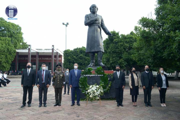 En conmemoración del CCX aniversario luctuoso de Don Miguel Hidalgo y Costilla, el Gobierno de Morelia realizó un izamiento de bandera en la Plaza Melchor Ocampo y posteriormente, el depósito de la ofrenda floral y guardia de honor en la plaza que lleva el nombre del caudillo de la Independencia.