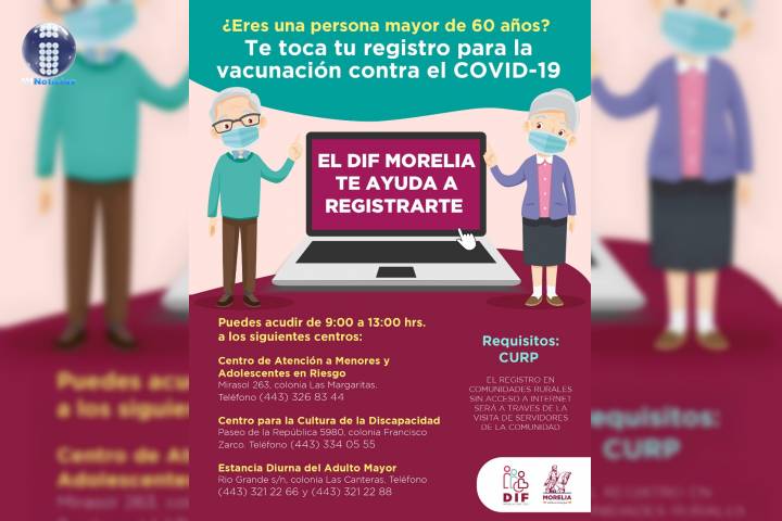 NOTICIAS 11/02/2021Gobierno de Morelia apoya a adultos mayores en registro para vacuna Covid-19En apoyo a la población considerada del sector vulnerable y con la finalidad de orientar a que adultos mayores puedan registrarse de manera exitosa en el portal para recibir la vacuna contra el Covid-19, que a próximas fechas autoridades federales iniciarán con este proceso, el Gobierno de Morelia habilitó ayuda tanto en oficinas como vía telefónica a la población que así lo necesite, en las oficinas del Instituto de la Juventud Morelian... Ver más...