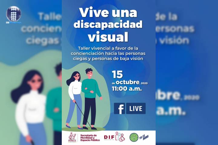 NOTICIAS 12/10/2020Promueve Ayuntamiento de Morelia concientización a favor de personas con discapacidad visualEn el marco al Día Internacional del Bastón Blanco, el Ayuntamiento de Morelia que encabeza el Presidente Municipal, Raúl Morón Orozco, a través del Sistema DIF Morelia y la Secretaría de Movilidad y Espacio Público (Semovep) llevará a cabo el taller virtual "Vive una discapacidad visual" para crear conciencia en favor de las personas con discapacidad visual.