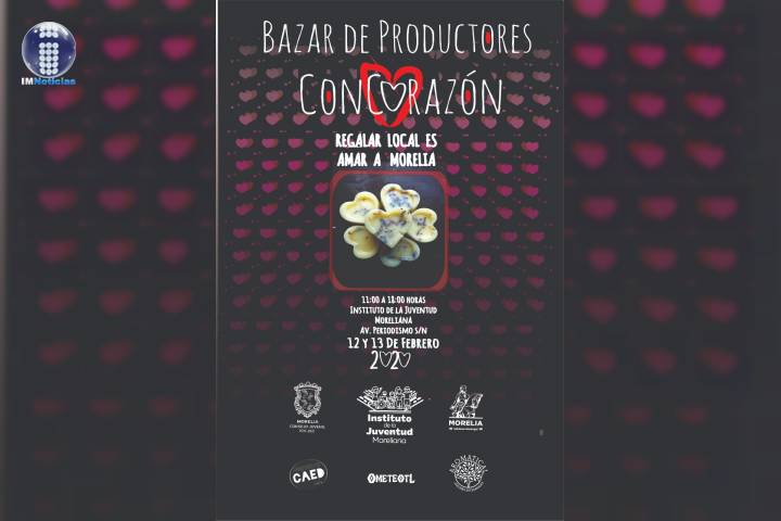 NOTICIAS 31/01/2020Jóvenes impulsan consumo local para este 14 de FebreroUna de las principales metas del Ayuntamiento de Morelia es impulsar el trabajo entre los jóvenes, es por esto que a través del Instituto de la Juventud Moreliana (IJUM) y en conjunto con el Consejo Ciudadano Juvenil de Morelia se llevará a cabo el Bazar de "Productores Con Corazón".