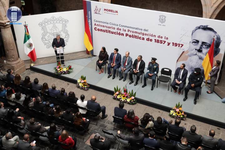 NOTICIAS 05/02/2020Encabeza Raúl Morón conmemoración de aniversario de la promulgación de las Constituciones de 1857 y 1917El presidente municipal de Morelia, Raúl Morón Orozco, lideró el izamiento y la ceremonia oficial, con motivo de la conmemoración de aniversario de la promulgación de las Constituciones Políticas de 1857 y 1917, celebradas en la Plaza Melchor Ocampo y el patio principal del Palacio, respectivamente.