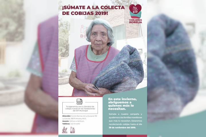 NOTICIAS 08/11/2019Invita DIF Morelia a donar cobijas en colecta 2019Bajo el lema "Cobijemos Morelia" el Ayuntamiento de Morelia que encabeza Raúl Morón Orozco, el DIF Municipal arrancó con la campaña 2019 de donación de cobijas nuevas para contribuir a mitigar el frío en comunidades marginadas de Morelia.