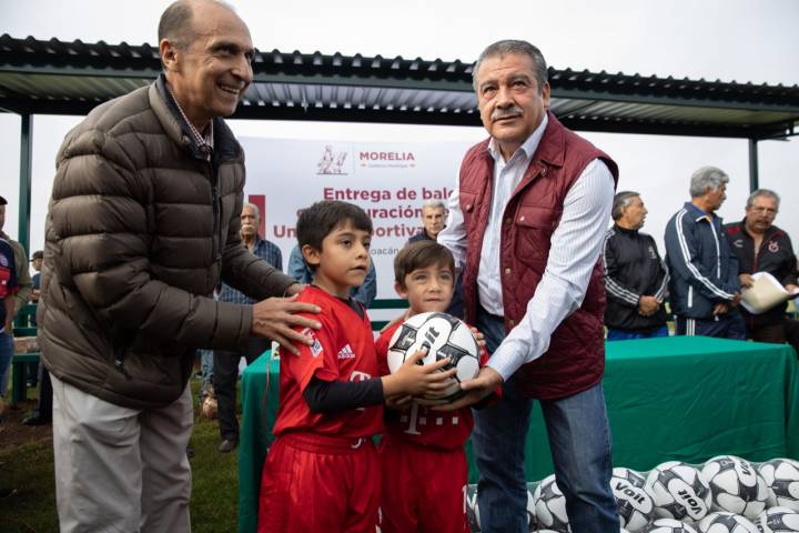 En la ruta de trabajo de masificar el deporte en el municipio y brindar las condiciones necesarias para promover la activación física, el presidente municipal Raúl Morón Orozco entregó esta mañana un total de14 bancas y 200 balones, por un monto de 800 mil pesos a la Liga Municipal de Morelia.