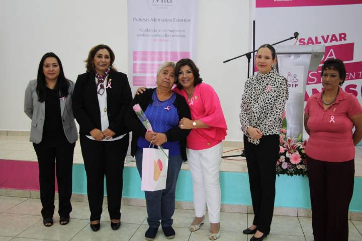 NOTICIAS 18/10/2019Entrega DIF Morelia prótesis de mama a mujeresEn el marco a este mes contra el Cáncer de Mama, la presidenta honoraria del DIF Morelia, Rosalva Vidal Pérez, realizó la entrega de 55 prótesis externas de mama y sostén porta prótesis a mujeres que han pasado por el procedimiento de mastectomía.