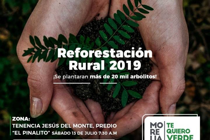 NOTICIAS 12/07/2019Prepara Ayuntamiento reforestación masiva en medio ruralCon la misión de dar un impulso a la recuperación ambiental que ha trabajado la administración municipal que encabeza Raúl Morón Orozco, en especial en las comunidades y tenencias, el Ayuntamiento de Morelia se encuentra listo para emprender su segunda jornada de reforestación, en la cual se plantarán 20 mil árboles en zonas rurales.