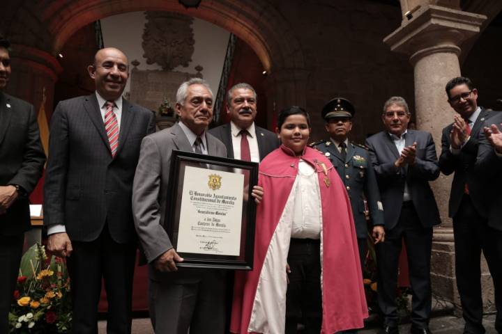 NOTICIAS 18/05/2019Entregan presea Generalísimo Morelos a Niños Cantores y activista social, Luis Ventura de la RosaEn el marco del 478 Aniversario de la Fundación de Valladolid, el presidente municipal, Raúl Morón Orozco, entregó en Sesión Solemne de Cabildo la Presea "Generalísimo Morelos" 2019 al activista social Luis Ventura de la Rosa Orozco, así como a al coro musical, los Niños Cantores de Morelia.