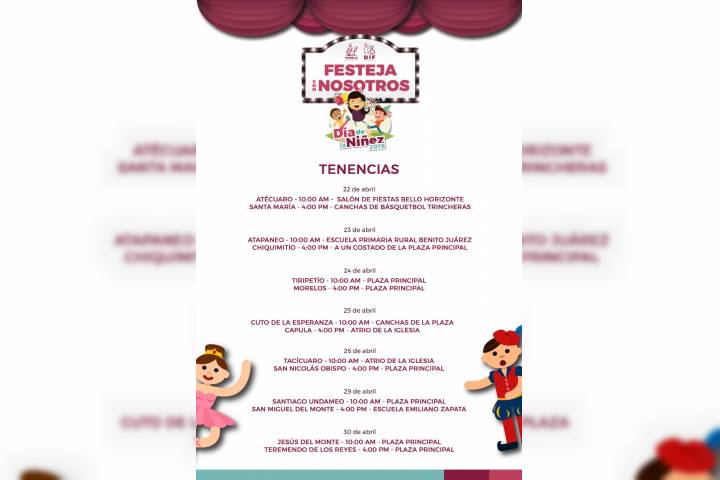 El Ayuntamiento de Morelia través del DIF Municipal, llevará un espectáculo para las niñas y niños de las 14 tenencias de la capital michoacana, a fin de festejar a todos los infantes del municipio.