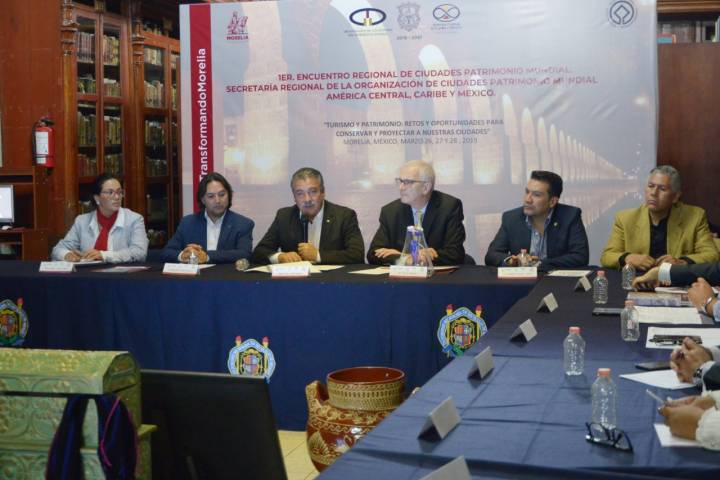 NOTICIAS 28/03/2019Con un manifiesto de trabajo, concluye el 1er. Encuentro Regional de Ciudades Patrimonio MundialCon la conformación de un manifiesto que establece las estrategias a seguir para garantizar el cuidado y potenciar el turismo global de las ciudades patrimonio, el presidente municipal de Morelia, Raúl Morón Orozco, dio por finalizado el 1er. Encuentro Regional de Ciudades Patrimonio Mundial, en las instalaciones de la Biblioteca Pública Universitaria.