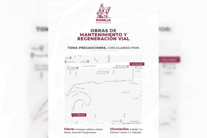 Por lo que a partir de hoy, queda abierto el acceso a Santa María por "La Paloma", transitando por la calle Mozart y Julián Carrillo, para llegar a Paseo de los Eucaliptos y posteri... Ver más...