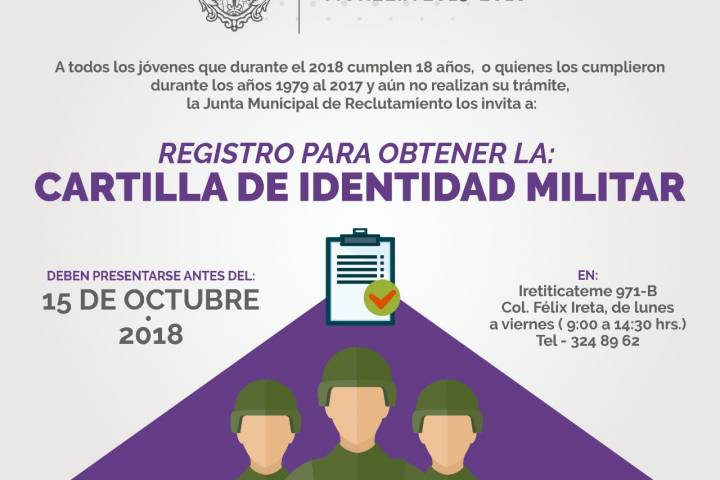 NOTICIAS 05/08/2018Junta Municipal de Reclutamiento invita a obtener Cartilla MilitarA través de la Junta Municipal de Reclutamiento, el Ayuntamiento de Morelia invita a los ciudadanos que tienen pendiente el trámite así como a los que recientemente cumplieron la mayoría de edad, a realizar el registro para obtener la Cartilla de Identidad Militar.
