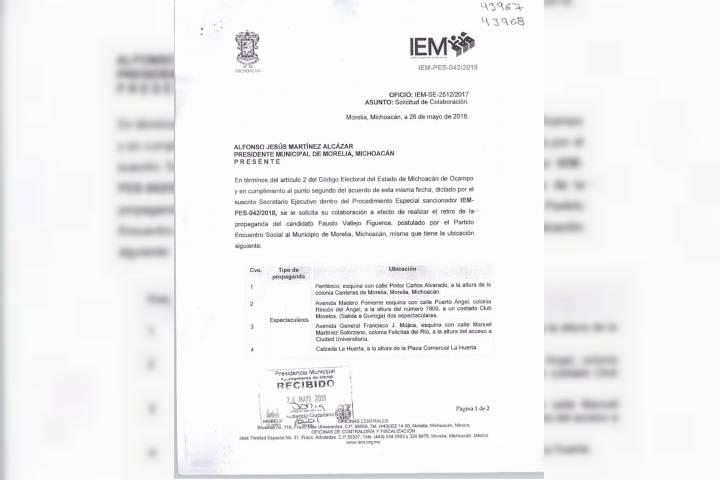 El funcionario municipal precisó que el pasado 26 de mayo y mediante oficio, el Instituto Electoral de Michoacán so... Ver más...