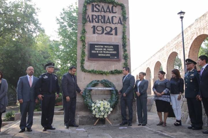 NOTICIAS 12/05/2018Conmemoran autoridades municipales Aniversario Luctuoso de Don José Isaac ArriagaCon el tradicional Depósito de Ofrenda Floral y Guardia de Honor, autoridades de los tres órdenes de gobierno, encabezadas por el Secretario de Desarrollo Humano y Bienestar Social del Ayuntamiento de Morelia, Guillermo Marín Chávez, conmemoraron la mañana de este sábado, el XCVII Aniversario Luctuoso de Don José Isaac Arriaga Ledesma.