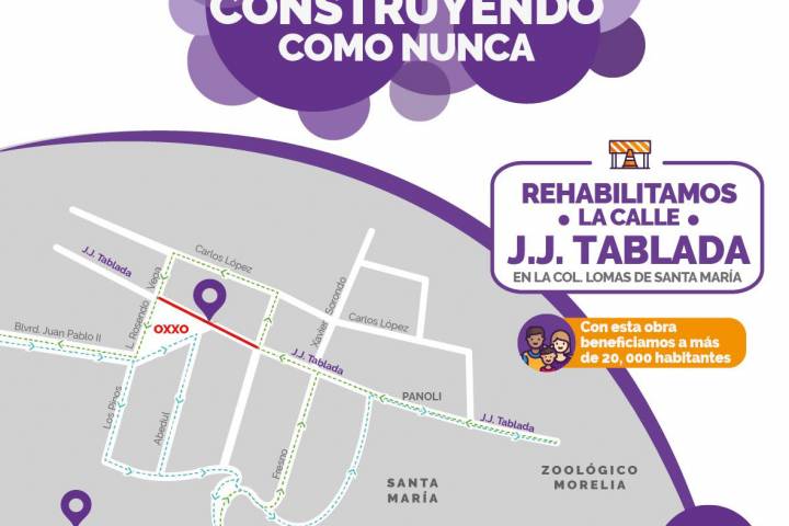 NOTICIAS 03/03/2018Para agilizar obra, se trabaja doble turno en rehabilitación de J. J. Tablada En la línea de seguir realizando obra como nunca antes, el Ayuntamiento de Morelia a través de la Secretaría de Desarrollo Metropolitano e Infraestructura, trabaja de manera rápida y eficaz en la obra de rehabilitación de la Calle José Juan Tablada, en la colonia Lomas de Santa, para beneficio directo de 20 mil personas.