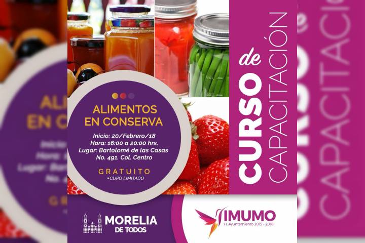 NOTICIAS 15/02/2018IMUMO abre un grupo más del Curso de Alimentos en Conserva El Gobierno Independiente de Morelia, encabezado por el Presidente Municipal, Alfonso Martínez Alcázar, continúa trabajando en la búsqueda de herramientas que favorezcan a la ciudadanía, con la finalidad de proporcionar una mejor calidad de vida para todas y todos los morelianos.
