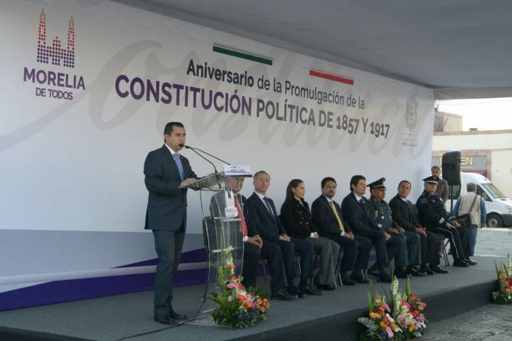 NOTICIAS 05/02/2018Conmemoran "Aniversario de la Promulgación de la Constitución Política de 1857 y 1917" Con un llamado a defender y mejorar la Carta Magna de México, el Ayuntamiento de Morelia, encabezado por el Alcalde Alfonso Martínez Alcázar, llevó a cabo la ceremonia cívica del "Aniversario de la Promulgación de la Constitución Política de 1857 y 1917".